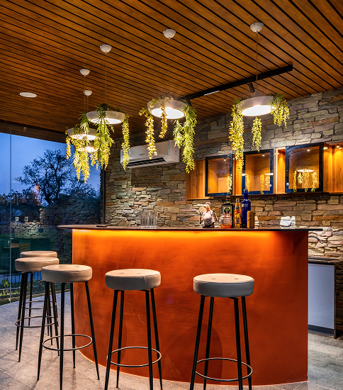 A warm contemporary home defined by clean wood lines and soft ambient lighting, blending open flow with intimate comfort for everyday elegance.